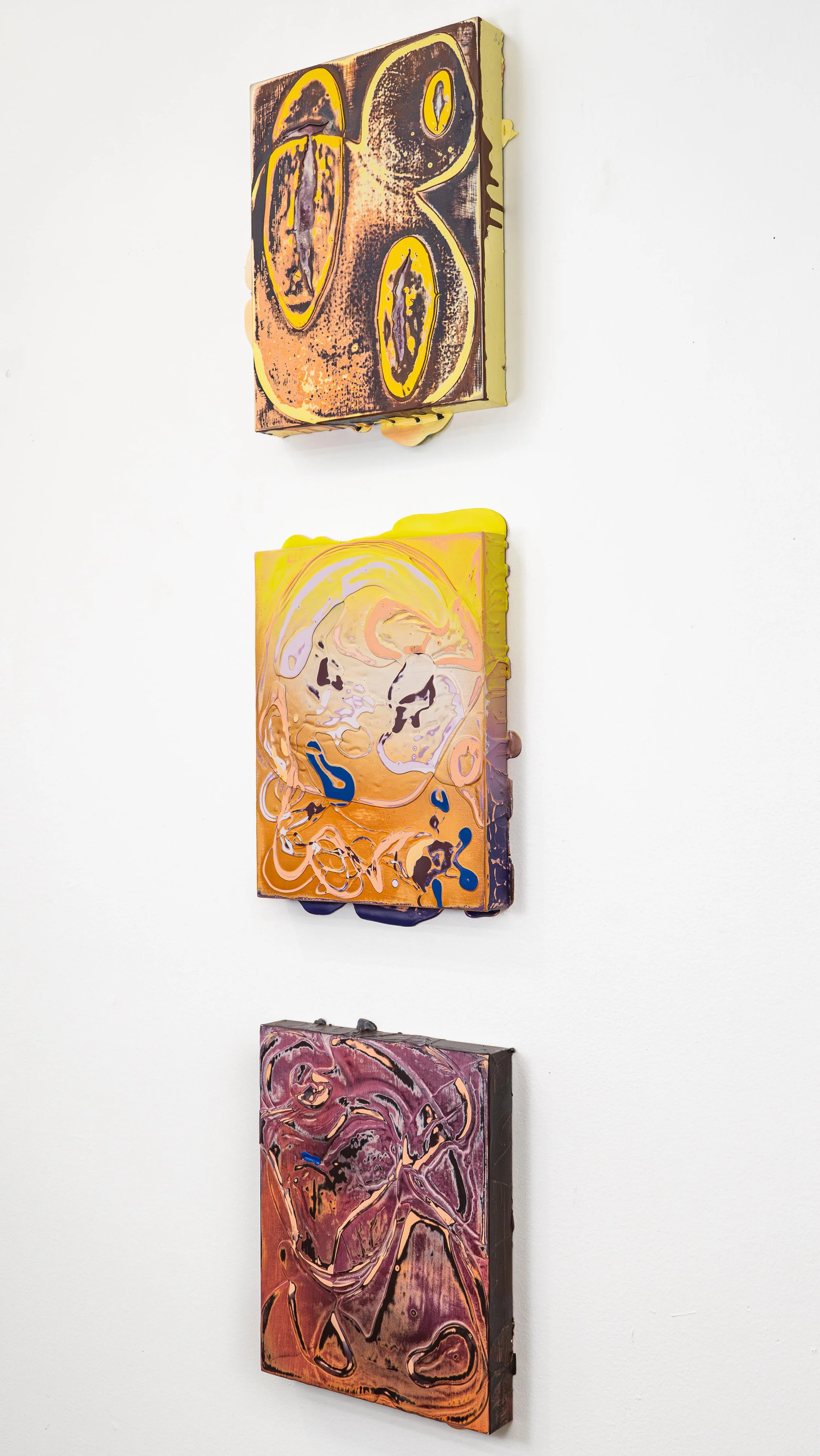 “Geographic. Metamorphic. Layered. Decayed. Mountainous. Built up. Deconstructed. Abstract. Conceptual. The work of Renée Phillips is embodied by not one but each of the aforementioned descriptors. Layers are built up in monochromatic schemes or multiple pools of color poured one atop another highlighting an extensive understanding of the properties of paint and a skillful use of color. Paint, both oil and acrylic, is tested and pushed beyond perceived limitations. The medium is often met on the surface with a range of enamel, spray paint, or wild posters ripped from the streets.